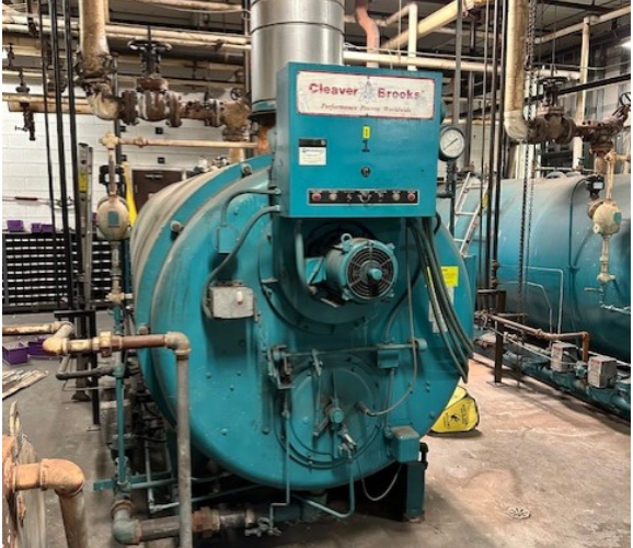 Inventory Cleaver Brooks200HP Firetube Model: 200HP Cleaver Brooks CB-Firetube.pdf BOILER Manufacturer: CLEAVER BROOKSModel: CB-700-200-200Year: 1998Type: SteamCapacity: 200 HPPressure: 200 PSI CONNECTIONS Steam Inlet: 4″Natural Gas: 2 1/2″Feedwater 2″Bottom Blowdown: 1 1/2″Continuous Blowdown: 1″ ELECTRICAL 460V/3PH/60HZ FUEL CONSUMPTION Natural Gas: 8,400 MBH ADDITIONAL INFORMATION CB-Firetube Boiler DIMENSIONS L x W x H: 235″ x 76″ x 86″Shipping Weight: 16,700 LBSOperating Weight: 25,325 LBS